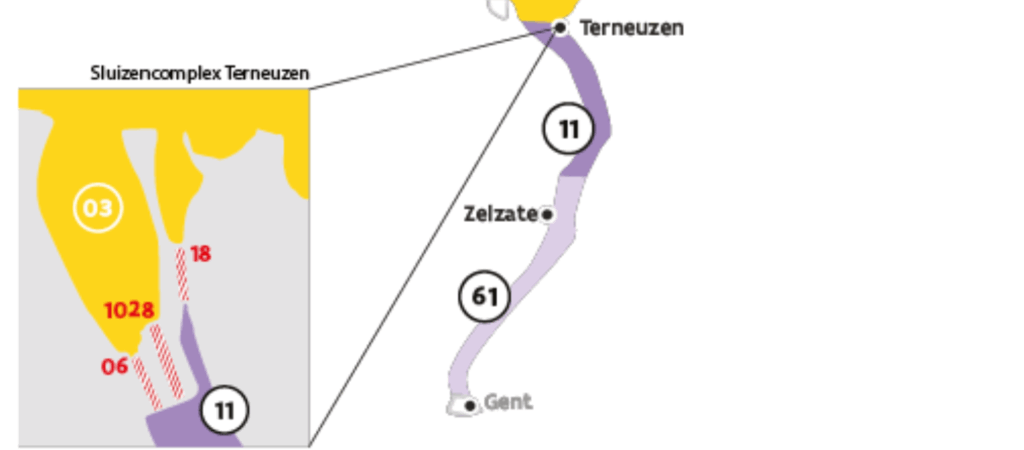 Van de Noordzeesluizen tot Tweekwart evenals Sluiskil-brug.